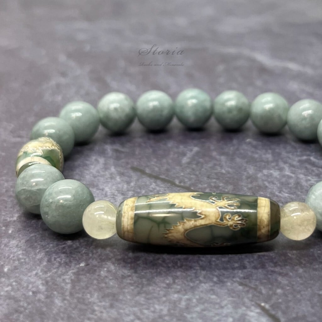 【一点もの】威厳と叡智の統合:二種の龍天珠×翡翠ブレスレット