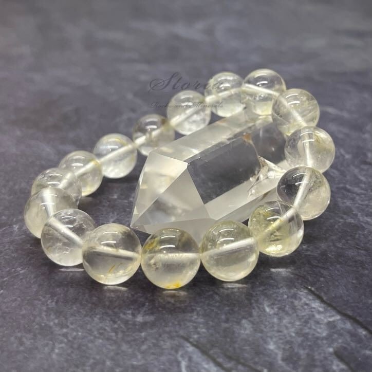 【一点もの】ガネーシュヒマール産 ライモナイト入り ヒマラヤ水晶 12mmブレスレット【国内加工】
