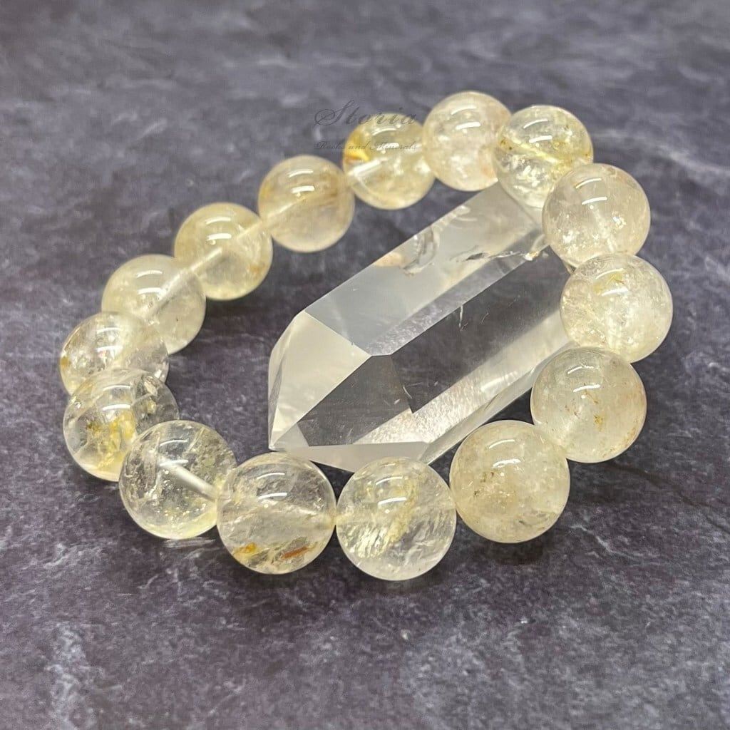 【一点もの】14mm ライモナイト入り ヒマラヤ水晶 ブレスレット【N010609/鑑別済み】