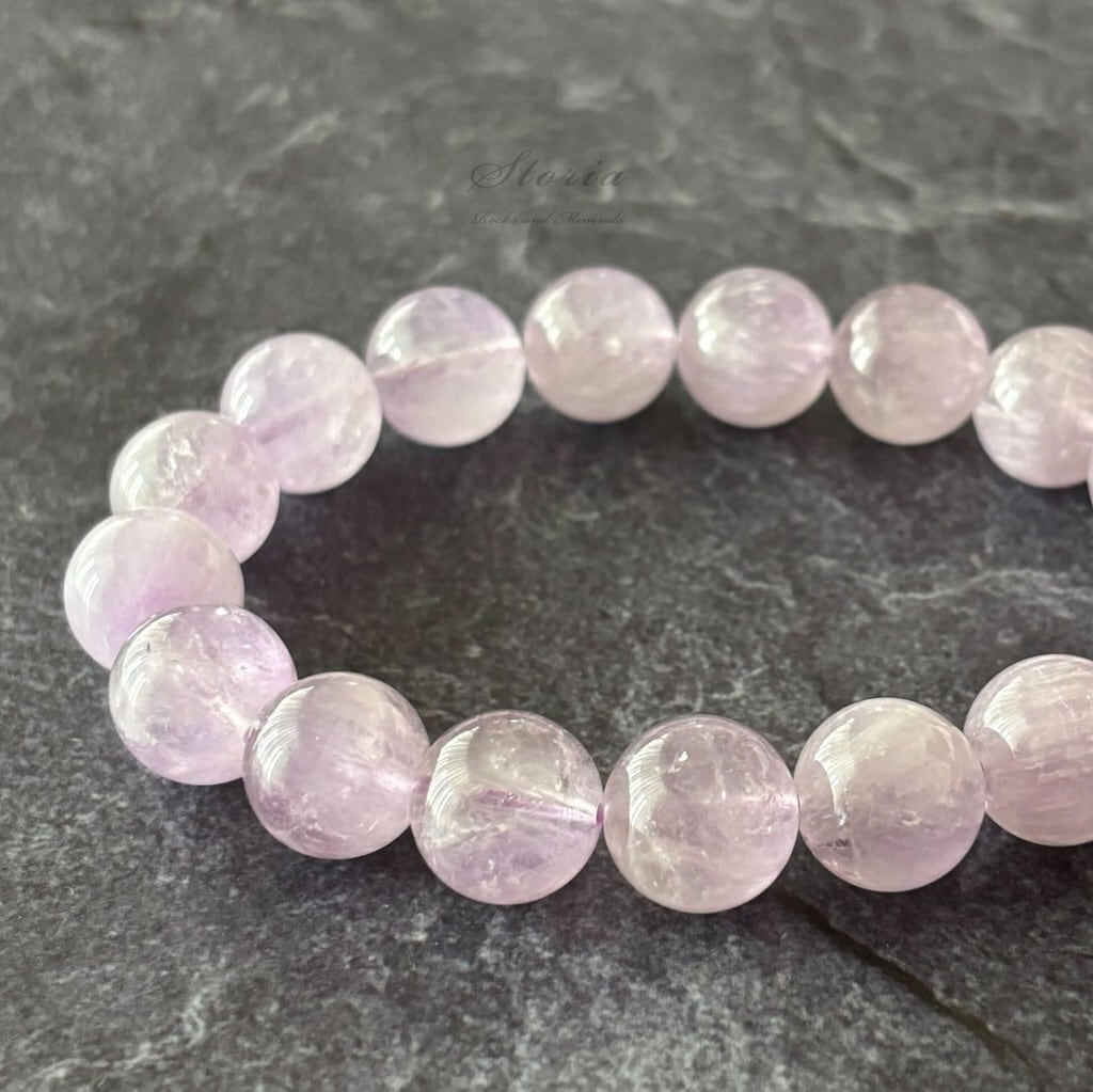 やわらかな白に溶け込む、淡いラベンダー色が美しいマダガスカル産アメジストのブレスレットです。