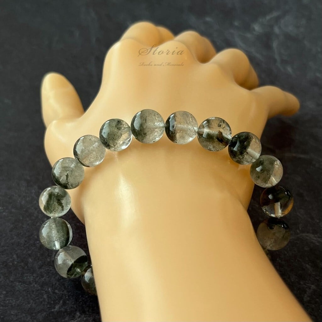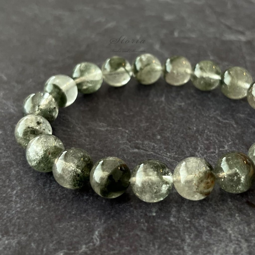 【大地の慈しみで疲れた心を再生】マナスル産 クローライト入りヒマラヤ水晶 10-10.5mm ブレスレット