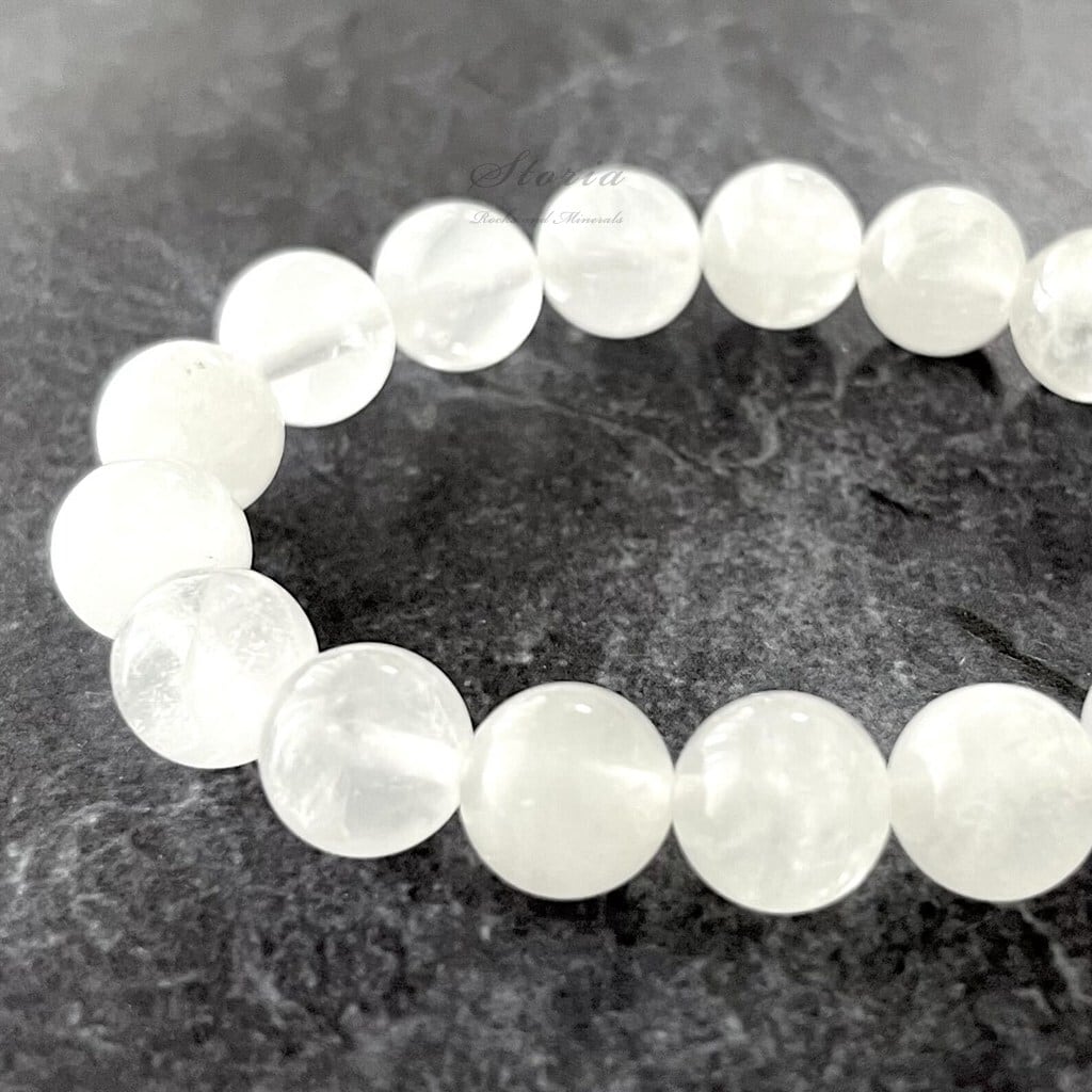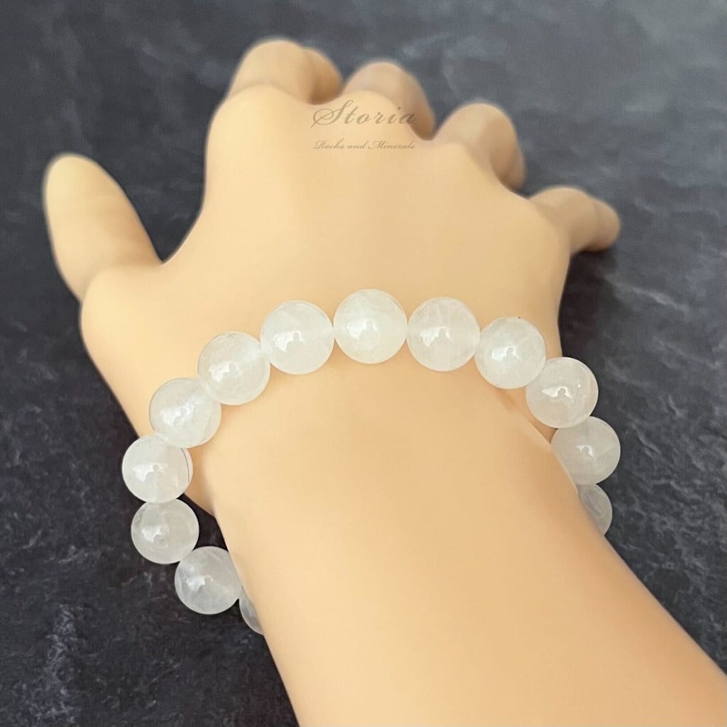 透明な水晶とはまた違う、まるで柔らかな光を閉じ込めたようなミルキーな質感が、手元を優しく、かつ高潔に彩ります。