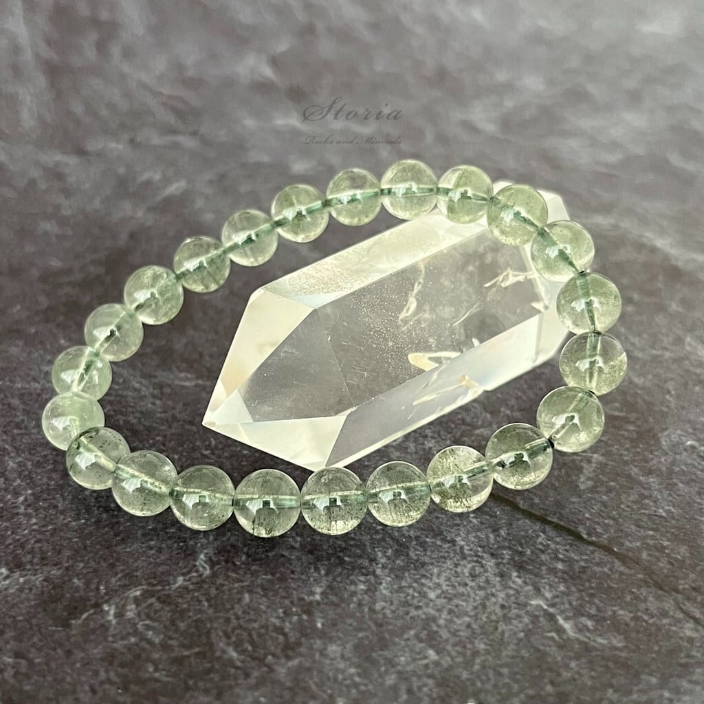【大地と深く繋がり心身を浄化】ガネーシュヒマール産 クローライト入り ヒマラヤ水晶 8mm ブレスレット【画像現物】