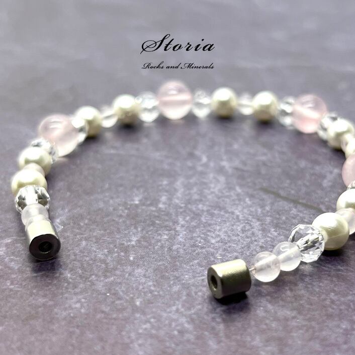 ローズクォーツ×淡水パール×ボタンカット水晶 ブレスレット