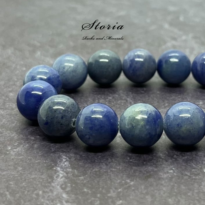 水晶にデュモルチェライトの成分が加わることで青くなった天然石です。デュモルチェライト・イン・クォーツと呼ばれることも。彩の濃いブルーカラーが魅力です。パワーストーンとしては組織力、規律、秩序をもたらすとされています。主な産地はブラジル、中国。
