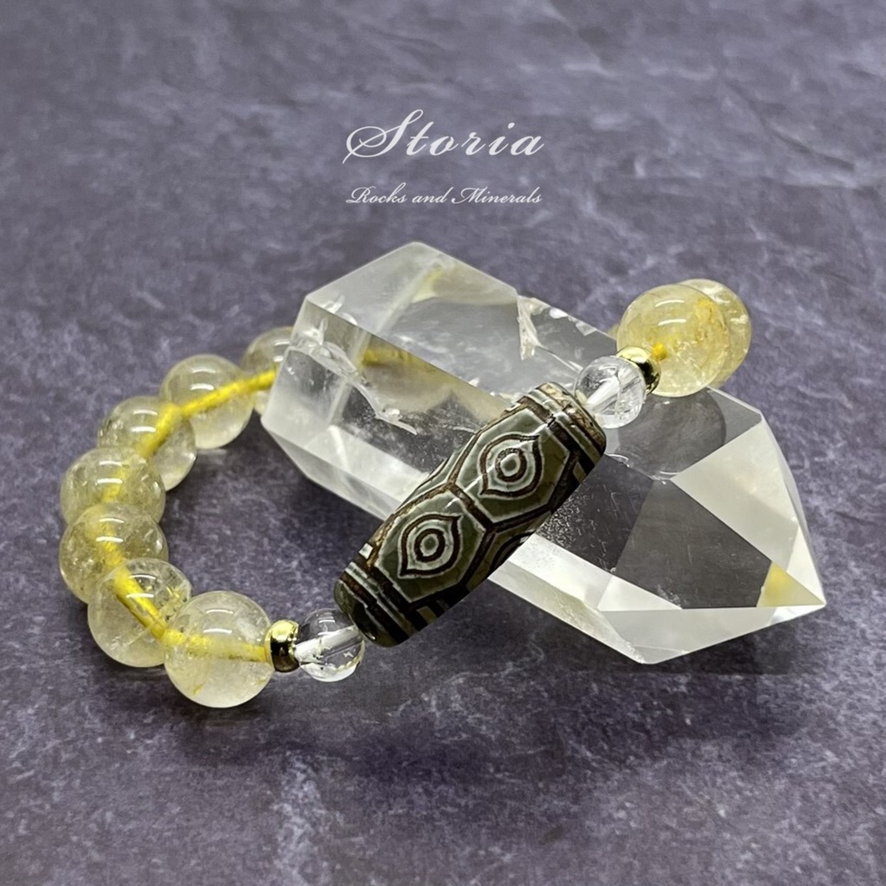 天珠の王様と呼ばれる龍眼天珠(瑪瑙)に、富貴の象徴とされるルチルクォーツを合わせたお品です!