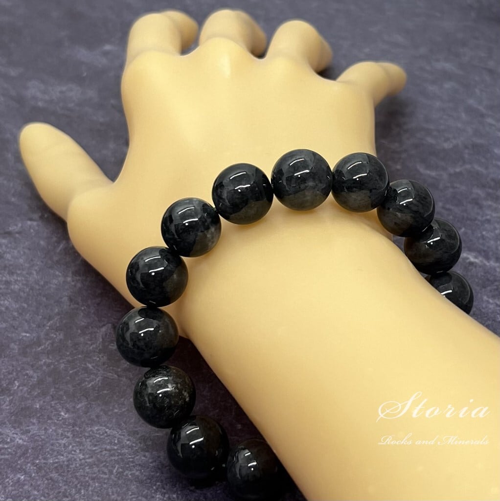 13mm ミャンマー産 黒翡翠(ジェダイド)ブレスレット