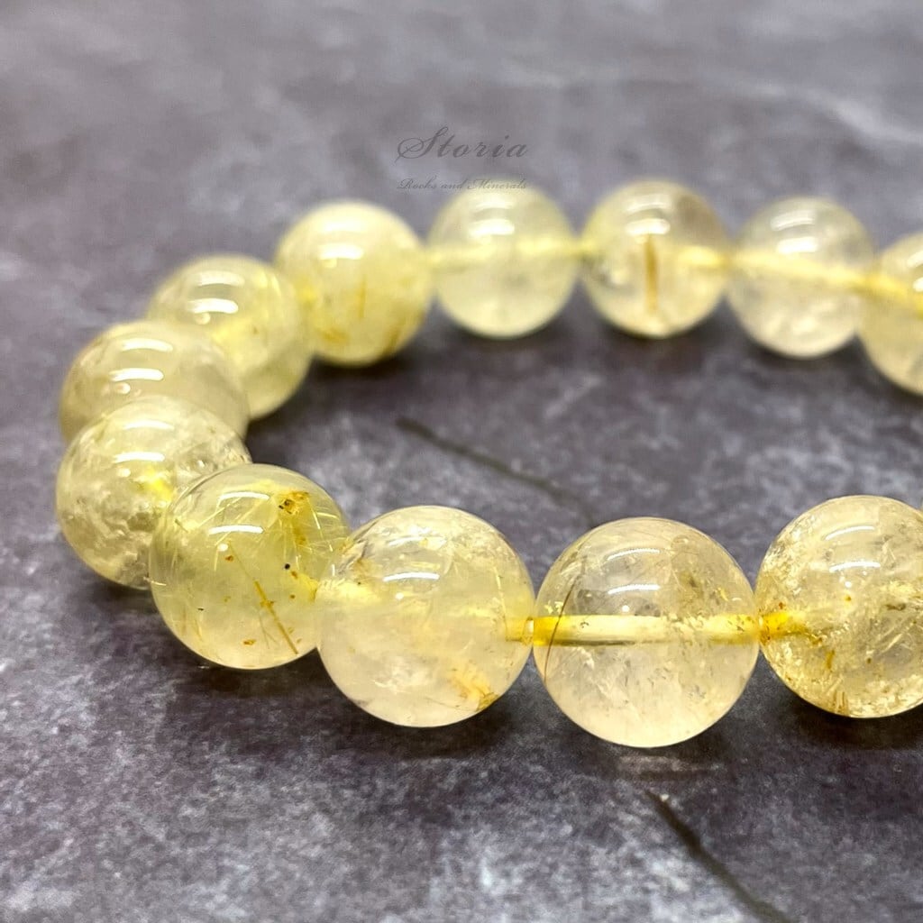 【一点もの】13.5mm バイーア州産 ゴールデン・ルチルクォーツ(金針水晶)ブレスレット【画像現物】